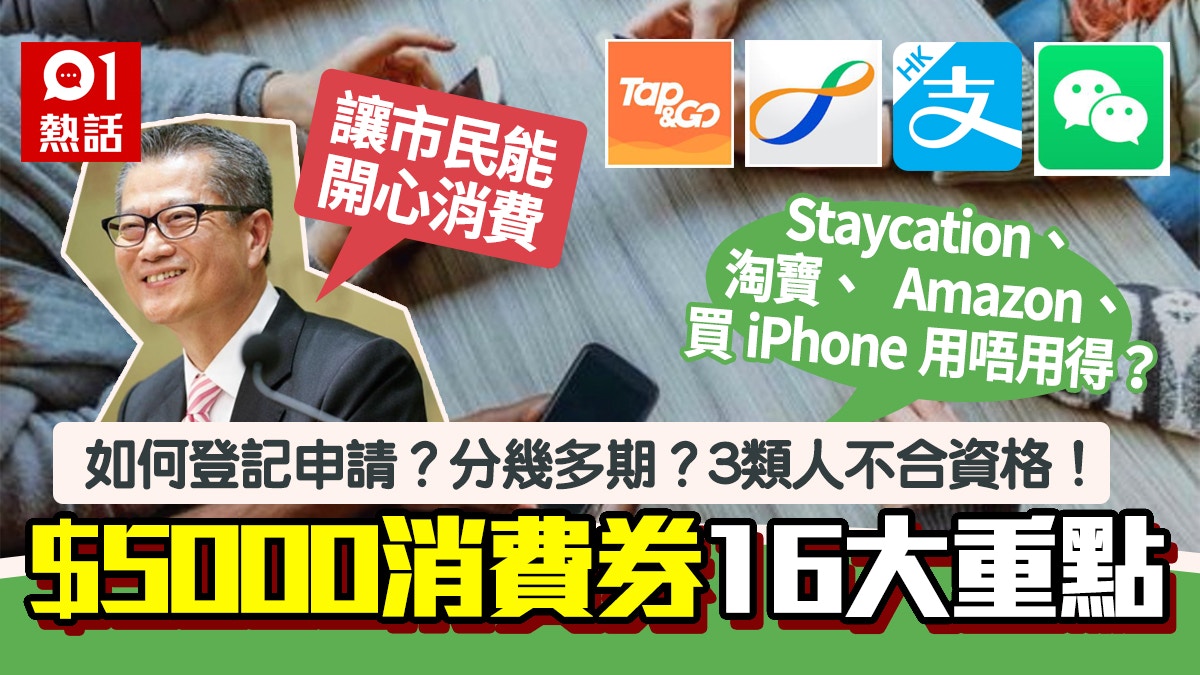 «é"éä»å¯å¥ç¾ 9顿¶è²»ä¸è½ç"¨ ç»è¨è³æ ¼éå¶ä¸è¦½ 馿¸¯01 ç±çè©±é¡ from cdn.hk01.com 5000元电子消费券将于暑假开始登记、九月前发放,并已选定八达通、支付宝、拍住赏 (tap & go)、wechat pay hong kong协助推行。. 港府今日(11日)公布有關細節,四家儲值支付工具營辦商包括支付寶 (alipay hong kong)、八達通 (octopus)、拍住賞 (tap & go) 、及wechat pay hong kong將協助推行計劃,預計在今年暑假接受登記。. Q: 如何使用消费券? a: 政府将物色合适的运营商,如八达通、支付宝、payme等,以协助推行消费券计划。(长者无需亲自使用消费券,若金额已存入八达通,照顾者可帮忙使用。) q: 申请方法. 财政司司长陈茂波昨日(11日)宣布,已甄选4家储值支付工具营办商协助推行该计划,港府将设立一个中央登记系统,预计今年暑假就可让市民以电子方式进行登记。 4家营办商分别是支付宝(alipay hong kong)、八达通(octopus)、拍住赏(tap & go)及微信. 电子消费券通过四家营办商发放,其中经支付宝香港、tap & go拍住赏和wechat pay hk获取的消费券先后发放2,000元和3,000元,前者有效期为五个月,后者有效期为三个月,市民可将两期. 其中,他表明透过支付宝香港、wechat pay hk或tap & go「拍住赏」领取第一张价值2000元的电子消费券后,可连同第二张价值3000元的消费券合并使用,作大额消费。. 4家营办商分别是支付宝 (alipay hong kong)、八达通 (octopus)、拍住赏 (tap & go)及微信 (wechat pay hong kong)。. A: 1、网上申请 2、书面申请(长着或有需要认识可予委托人协助登记,根据以往派钱经验,香港邮政可提供申请服务。) q: 哪些地方可用消费券?